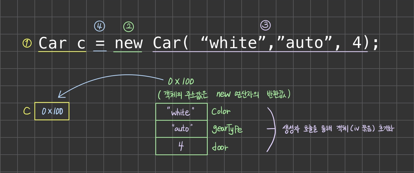 - new 연산자가 해당 클래스를 스캔 후, 객체를 만든다.