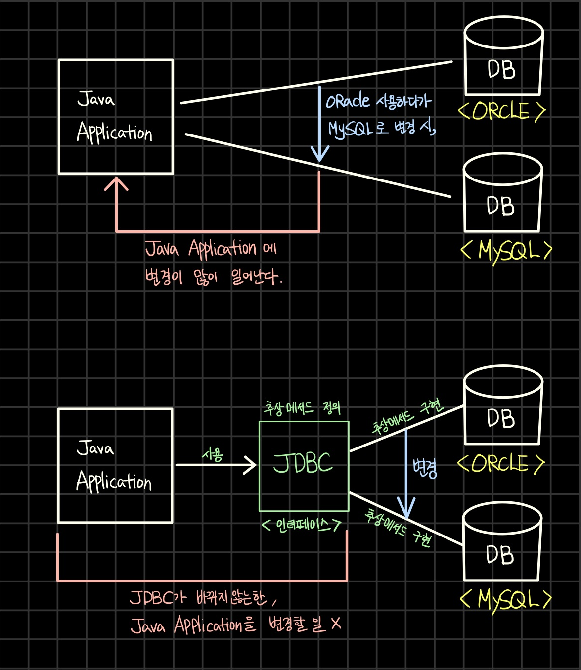 - 인터페이스는 두 대상(객체) 간의 연결, 대화, 소통을 돕는 중간 역할