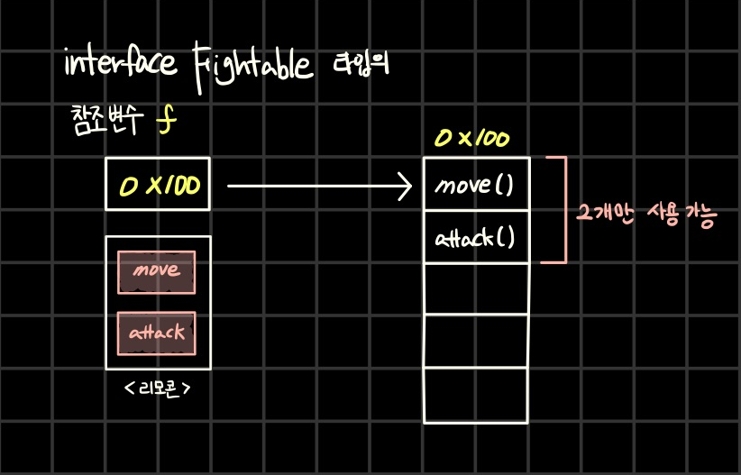 public void attack(Fightable f) { /* 내용 생략 */ };