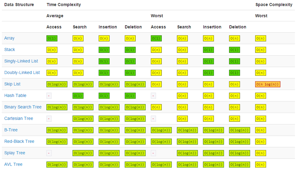 아래표는 배열의 대표적인 정렬 알고리즘 시간복잡도를 나타낸다. 이진탐색, 그리디 등의 알고리즘도 있으니 더 알아보자.