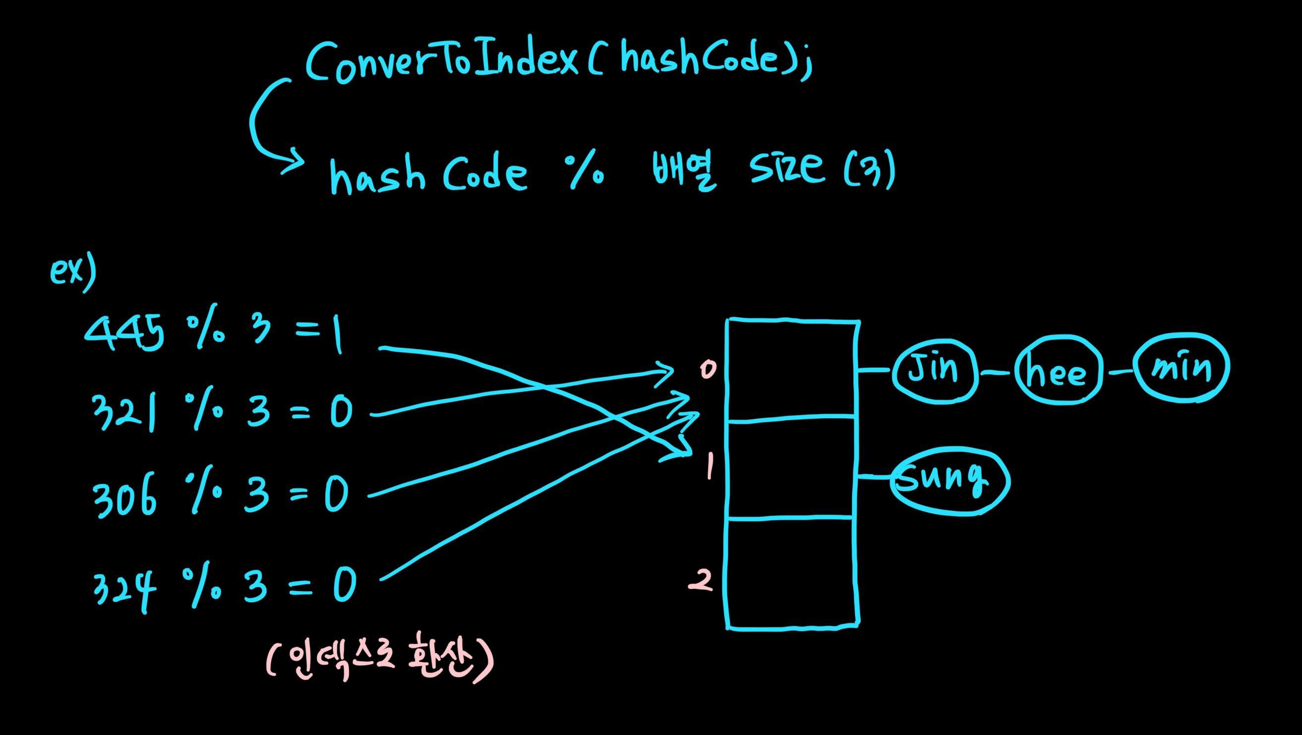 2. 해시코드를 배열의 index로 환산한다. (converToIndex(hashCode))