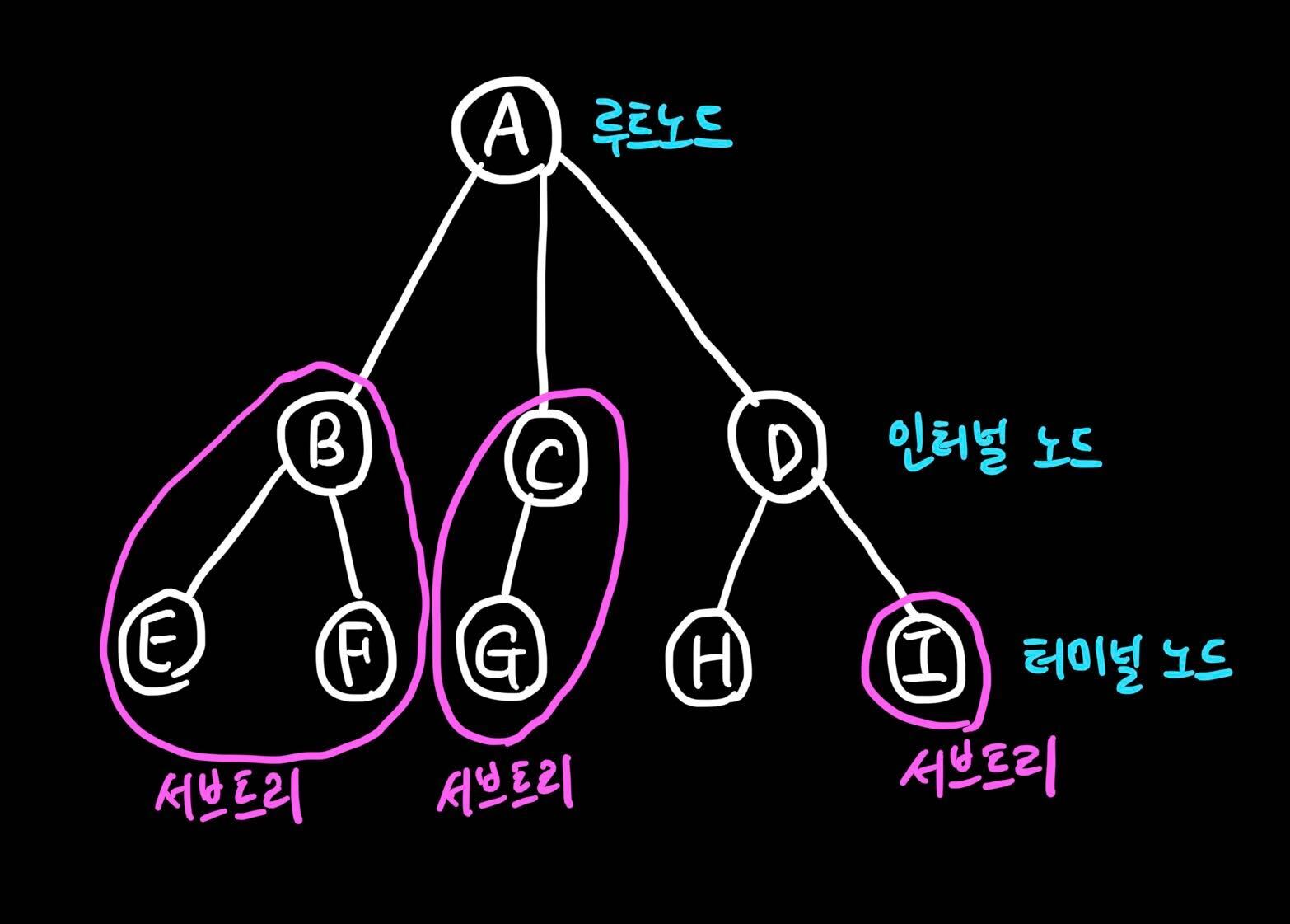 - 한 덩어리의 트리는 여러 개의 트리 집합으로 볼 수도 있다. (그림에 있는 서브트리의 집합)
