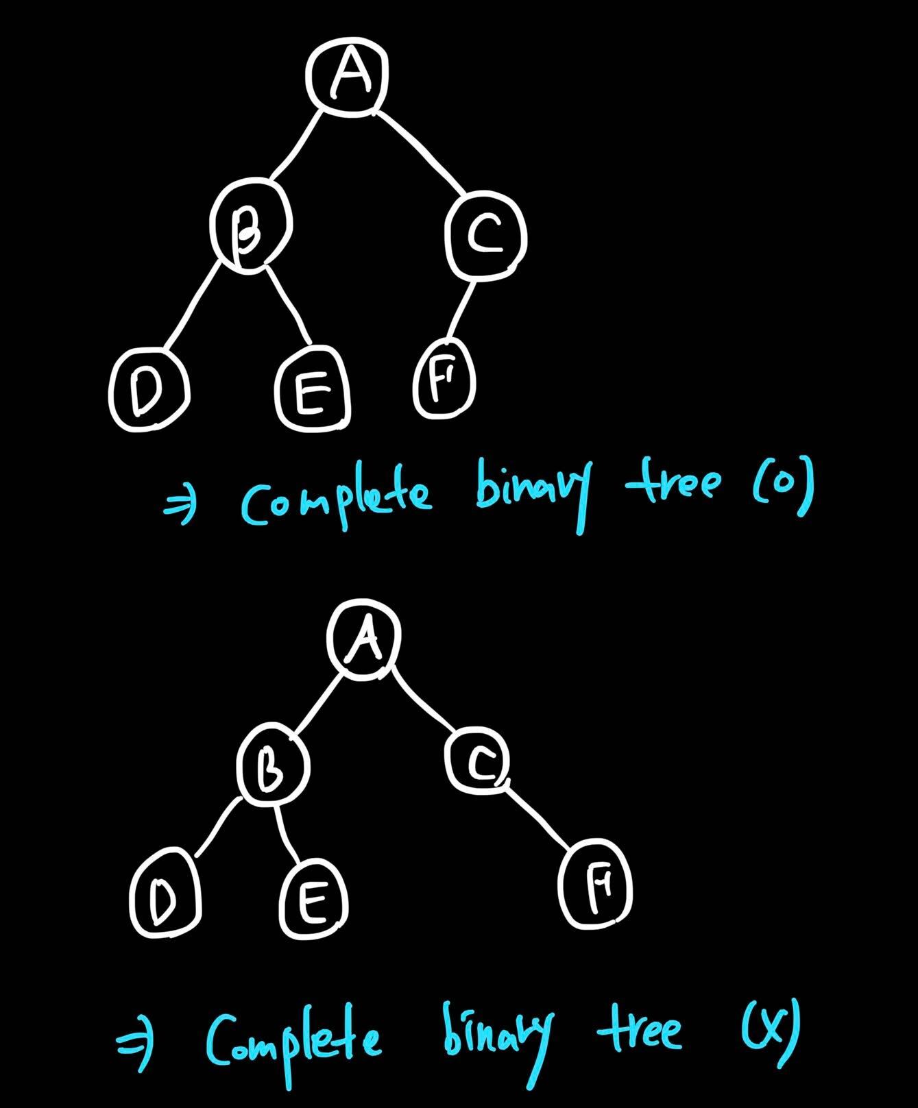 - 최대 레벨을 제외한 나머지 레벨의 노드들은 (왼쪽부터)모두 채워져 있어야 한다.