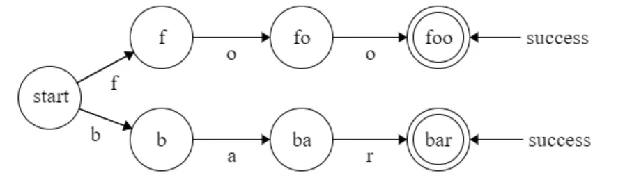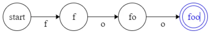 - for → f-o는 소비되지만 r은 최종 상태인 foo와 일치하지 않으므로 실패하고 다음 토큰을 사용하여 start 지점으로 돌아간다.