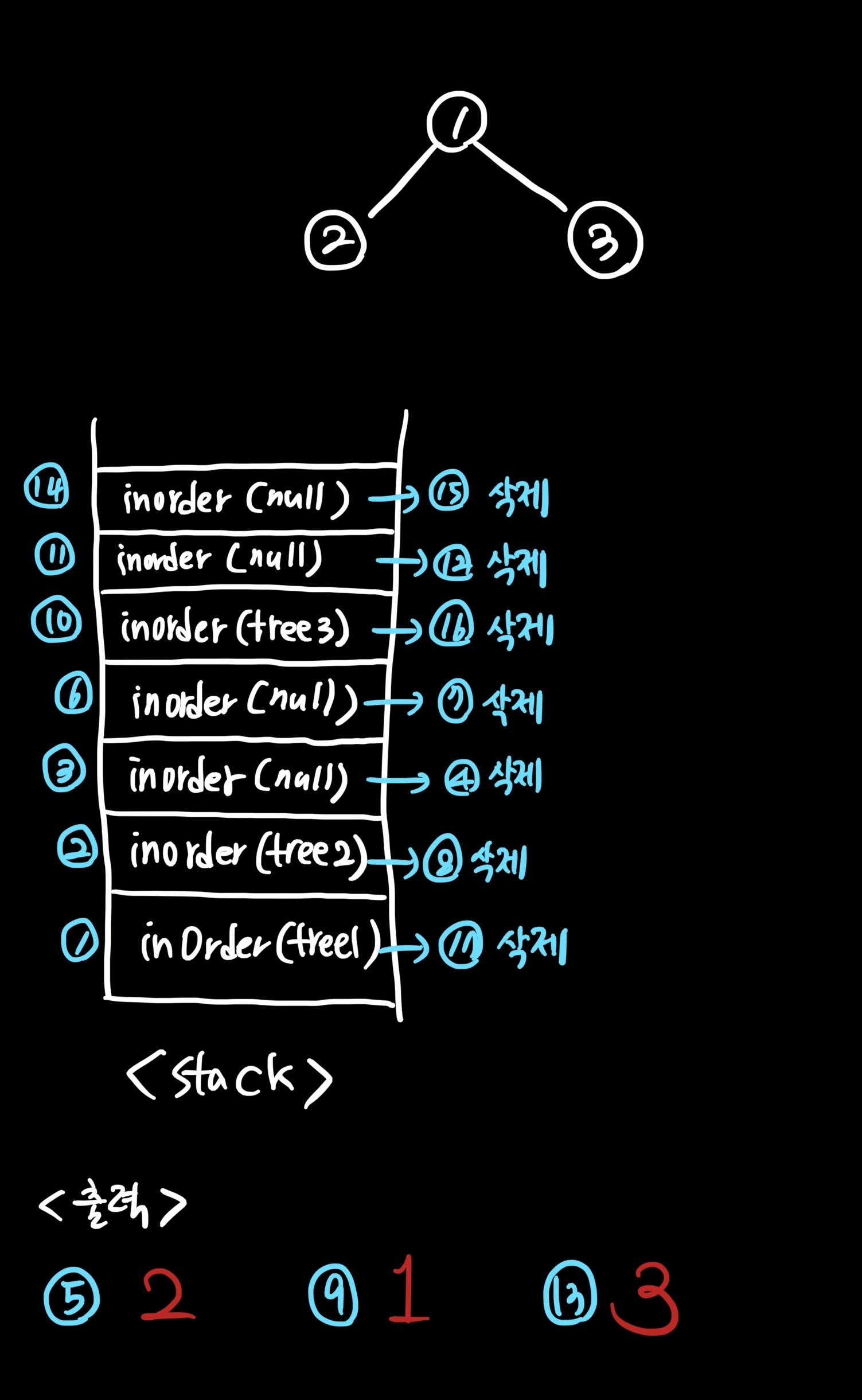 이 부분을 stack 구조에서 표현을 해보면(재귀 헷갈려서 그려봤다...🤦♀️)